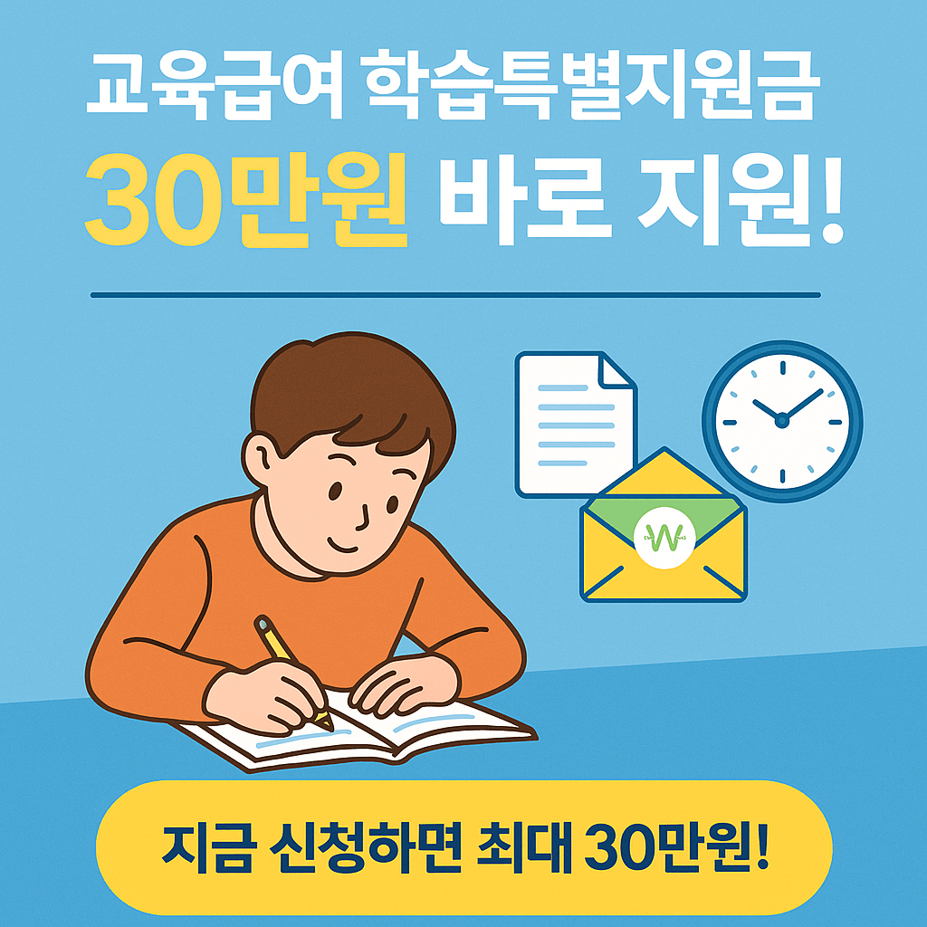 자녀의 교육비 부담으로 고민이 많으신가요? 교육급여 수급 가정이라면 놓쳐서는 안 될 기회가 있습니다. 초·중·고등학생을 위한 『교육급여 학습특별지원금』으로 최대 30만 원까지 지원받을 수 있는 방법을 지금 바로 확인해보세요!