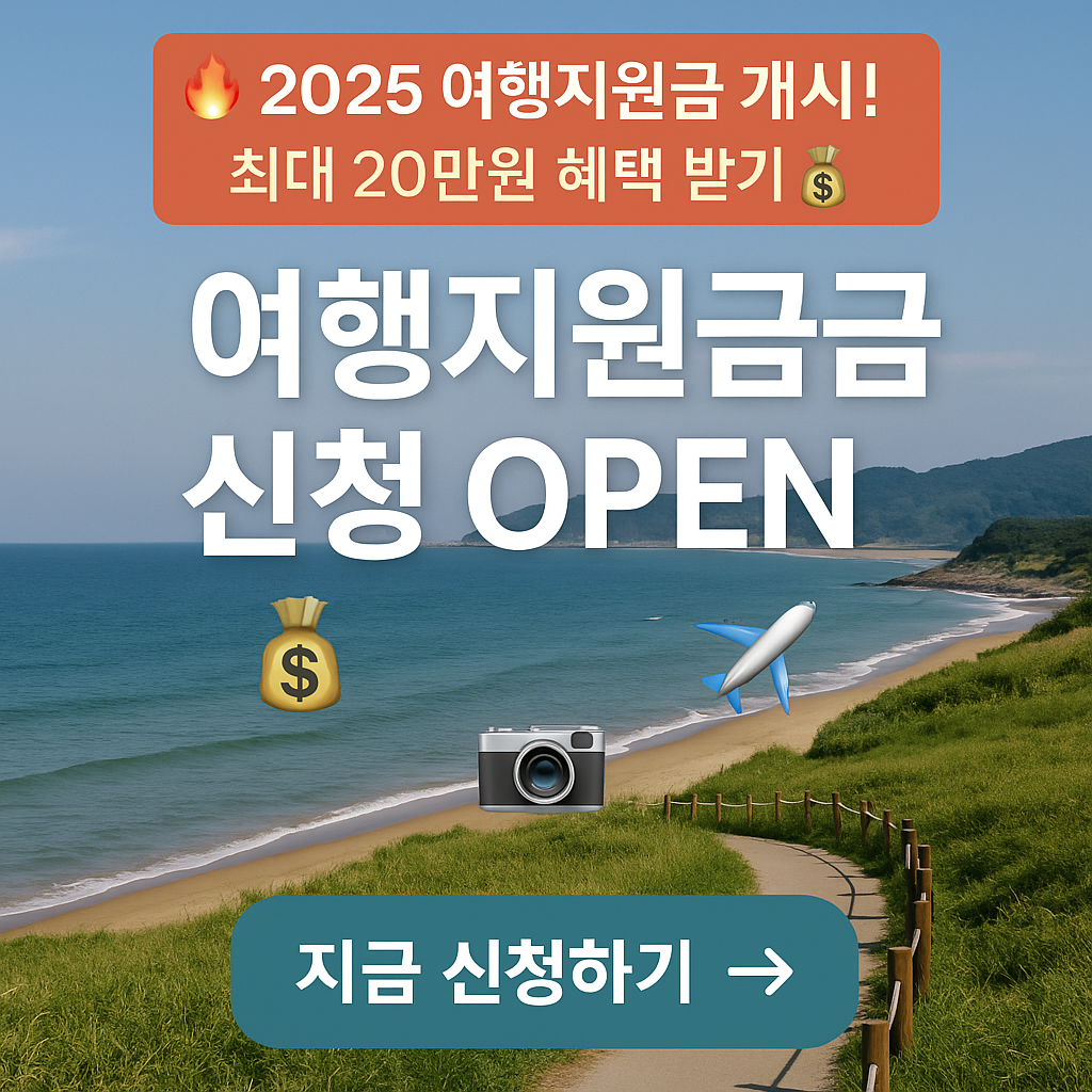 2025년 6월부터 9월까지 신청하면 12월까지 자유롭게 사용할 수 있는 여행지원금. 청년층은 최대 15만원, 저소득층과 장애인은 최대 20만원까지 지원받아 여행 비용 부담을 획기적으로 줄일 수 있습니다. 이 기회를 놓치지 마세요.