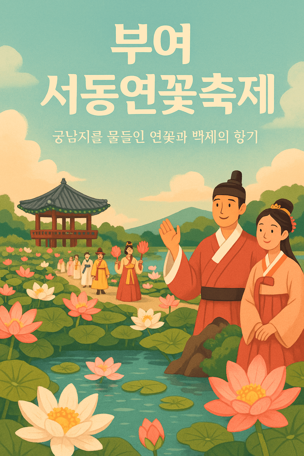부여는 백제의 옛 도읍지이자, 서동과 선화공주의 전설이 흐르는 고도입니다. 그리고 그 사랑의 상징인 연꽃이 매년 7월, 궁남지 일대에 만개합니다. 연못을 가득 메운 꽃 사이를 걷다 보면 마치 과거의 연인처럼 느껴지는 순간이 찾아옵니다.
